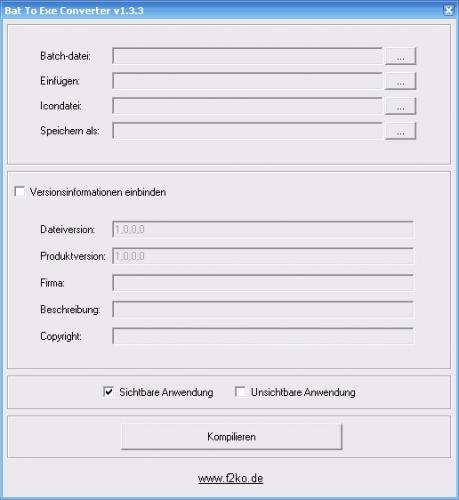 Jaja, Batch, schon eine tolle Sache :). Wenn euch kurz das schwarze beim starten stört, hab ich einen super Tipp : Saugt euch irgendwo das Programm : Bat To Exe Converter, (wenn ihr es nicht findet kann ich es auch mal bei Rapid Share hochladen). Es sollte dann extrahiert, so aussehen :