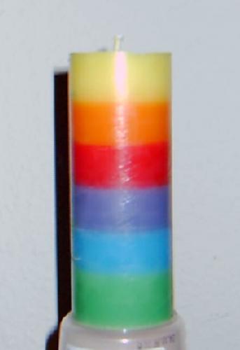 Ich hab auch schon verschiedene Kerzen gegossen. Meist auch mit mehreren Farben. Allerdings fixiere ich oben den Docht immer mit einer alten Rouladennadel. Übrigens kommt es auch die Temperatur vom Wachs an, ob die Kerze dann eher glänzend oder matt ist. Je heisser das Wachs, desto mehr glänzt sie danach.